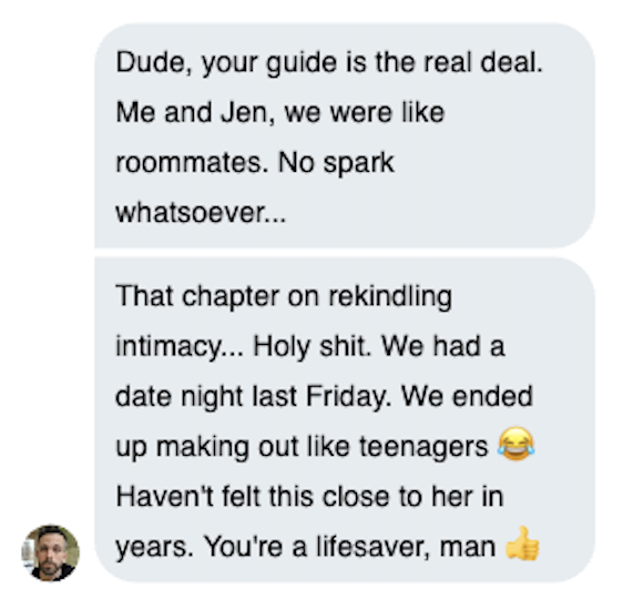 My wife told me she 'wasn't in love with me anymore' and wanted a separation. I was devastated. I stumbled across this guide and the 'reigniting her love' chapter spoke directly to my situation. I realized I'd been neglecting her emotional needs for years. The '5 love language mastery strategies' opened my eyes - Her primary love language was acts of service, and I'd been trying to show love through telling her. I started doing little things around the house without being asked, surprising her with her favorite coffee in the morning, and planning date nights. Last night, she cuddled up to me on the couch - something she hasn't done in months - and whispered 'I feel so much closer to you recently and I don't know why, but I don't want it to change.' I honestly teared up. This guide didn't just save my marriage, it's helping me become a better man and husband.